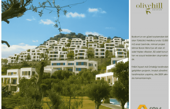 Bodrum’un en güzel koylarından biri olan Türkbükü Hebil Koyu’nda 12.000 m2 arazi üzerinde konumlanmış, projesi ünlü mimar Boran Ekinci’ye ait olan 41 adet triplex villadan, 82 adet konuttan ve sosyal tesislerden oluşmaktadır. FABA İnşaat Adi Ortaklığı tarafından geliştirilen projenin, imalat yönetimi tarafımızdan yapılmış, site 2009 yılında teslim edilmiştir.